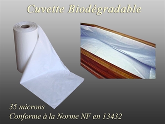 Housse ensevelissement Bio 150 microns Dimensions : 900x2350 / Ouverture Centrale / Double Tirette Agréée sous le N° : SANP0421045A Par arrêté du 4 mai 2004 Parution au JO du 19 mai 2004